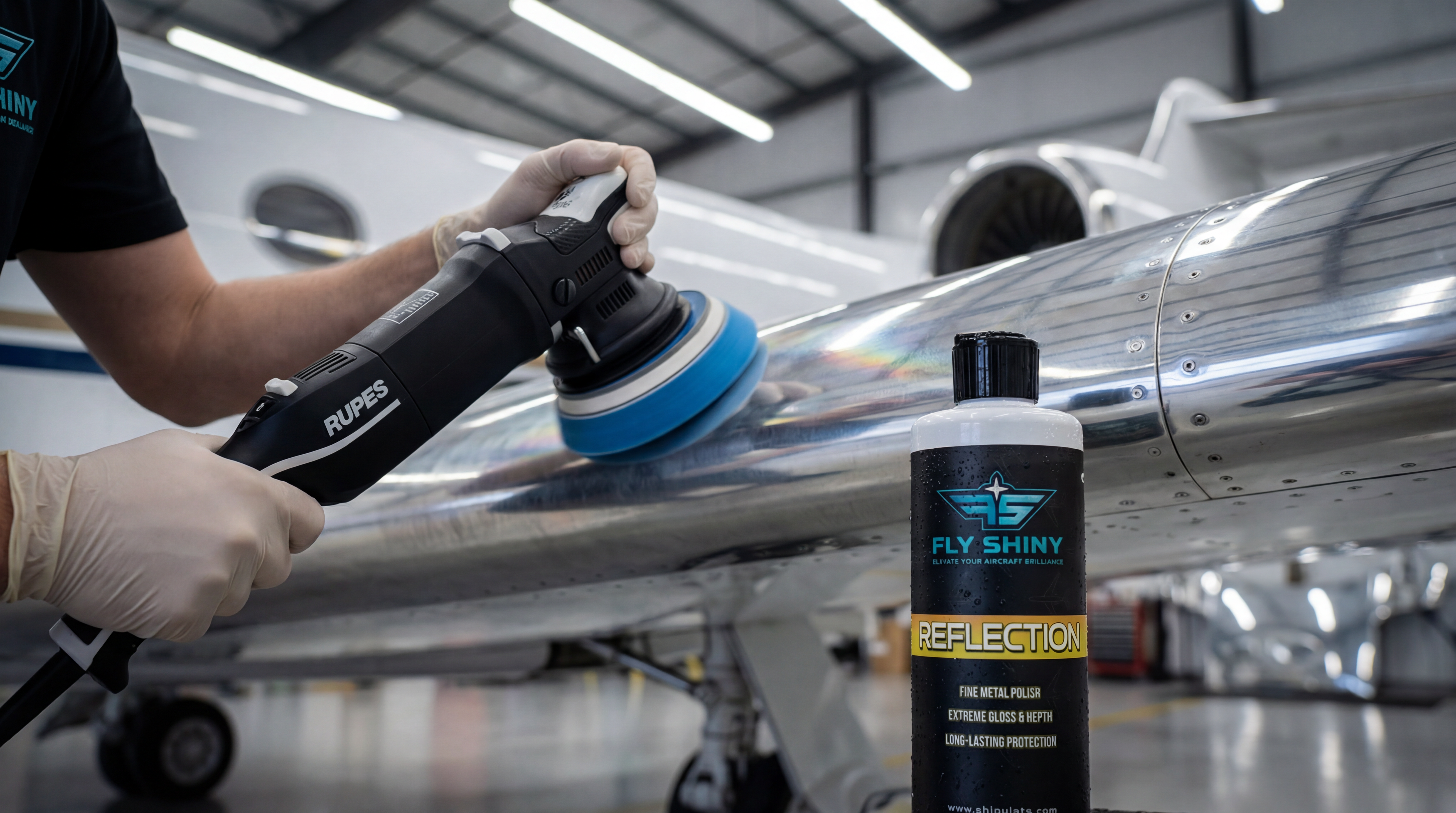 Fly Shiny Reflection is a finishing polish for aircraft brightwork that removes holograms and surface distortion while boosting depth, gloss, and clarity. Designed for aluminum and polished metal surfaces, it applies easily, spreads evenly, and delivers a clean, mirror-like finish with minimal effort. Ideal for final-stage polishing and professional presentation.