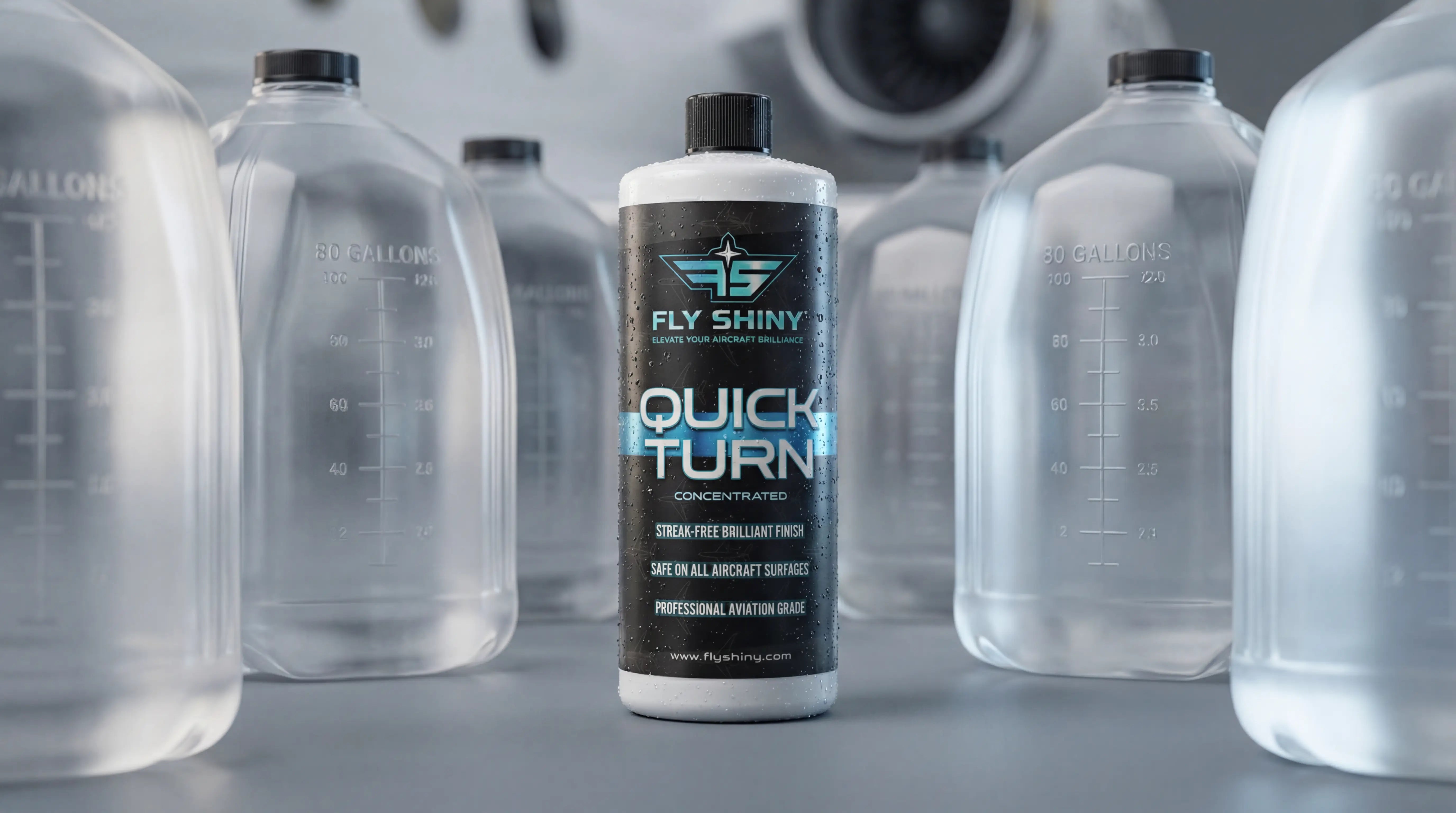 Fly Shiny Quick Turn Concentrate is a professional dry wash designed to clean aircraft surfaces without water. It lifts dirt safely, reduces friction during wipe-downs, and leaves a streak-free finish while minimizing micro-scratches. Ideal for exterior wipe-downs and maintenance between full washes, this concentrated formula delivers results at scale. One 32oz bottle makes up to 80 gallons of ready-to-use solution, giving detailers, FBOs, and aircraft owners exceptional value without sacrificing results.
